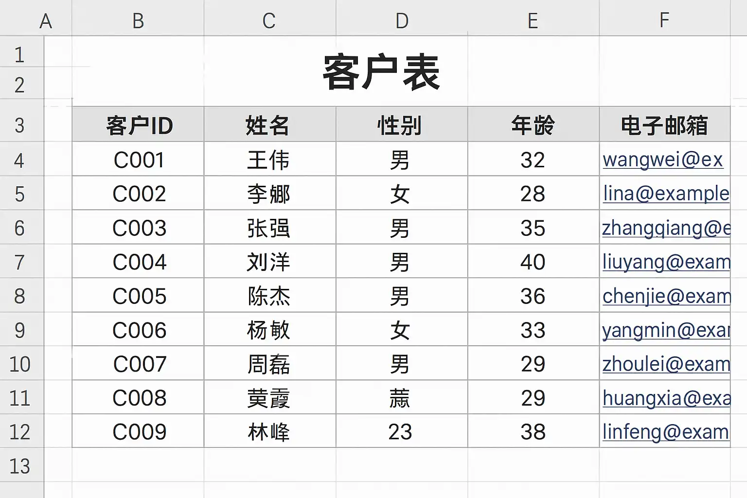 《客户表格excel》