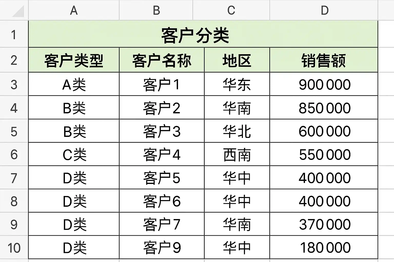 《excel客户分类》