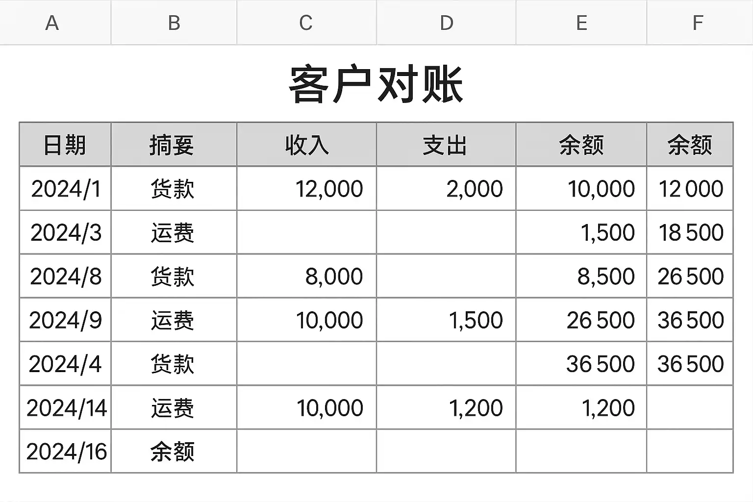 | 对账核算 | 使用公式自动计算余额及差异 |