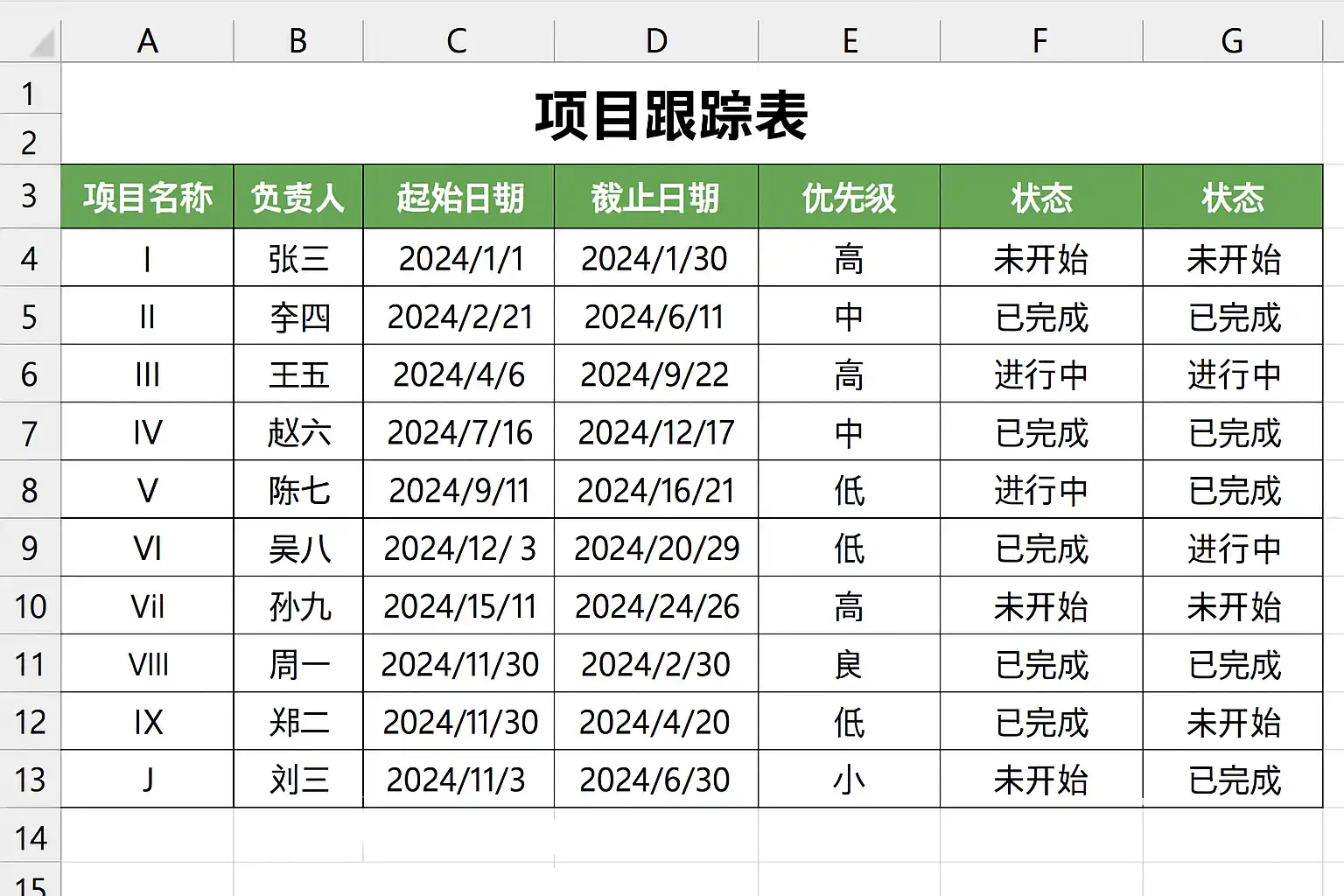 | 状态跟踪 | 展示每个任务当前状态 | 条件格式/标志列 |