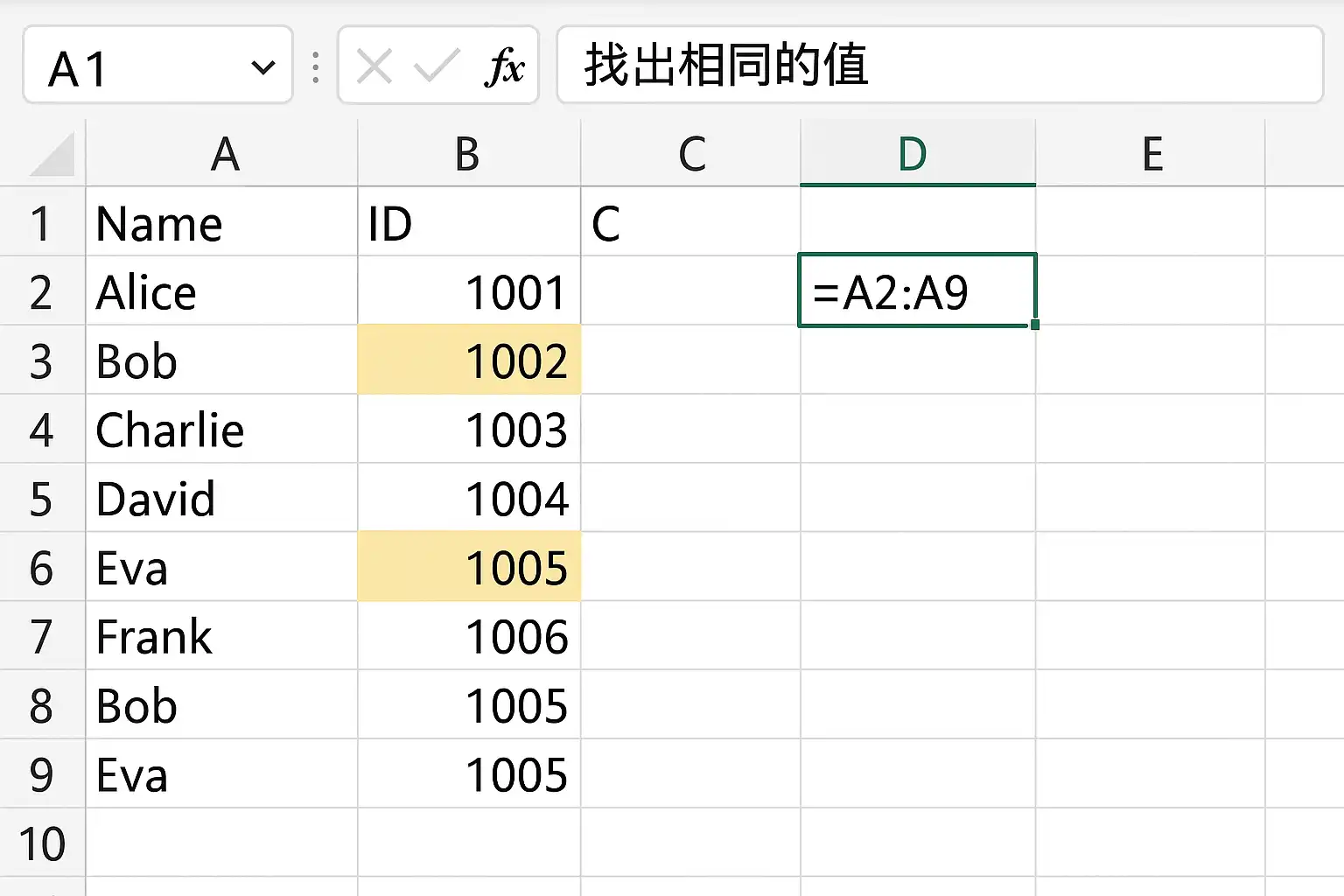 如何用Excel公式快速比较两个数据库找出相同数据?