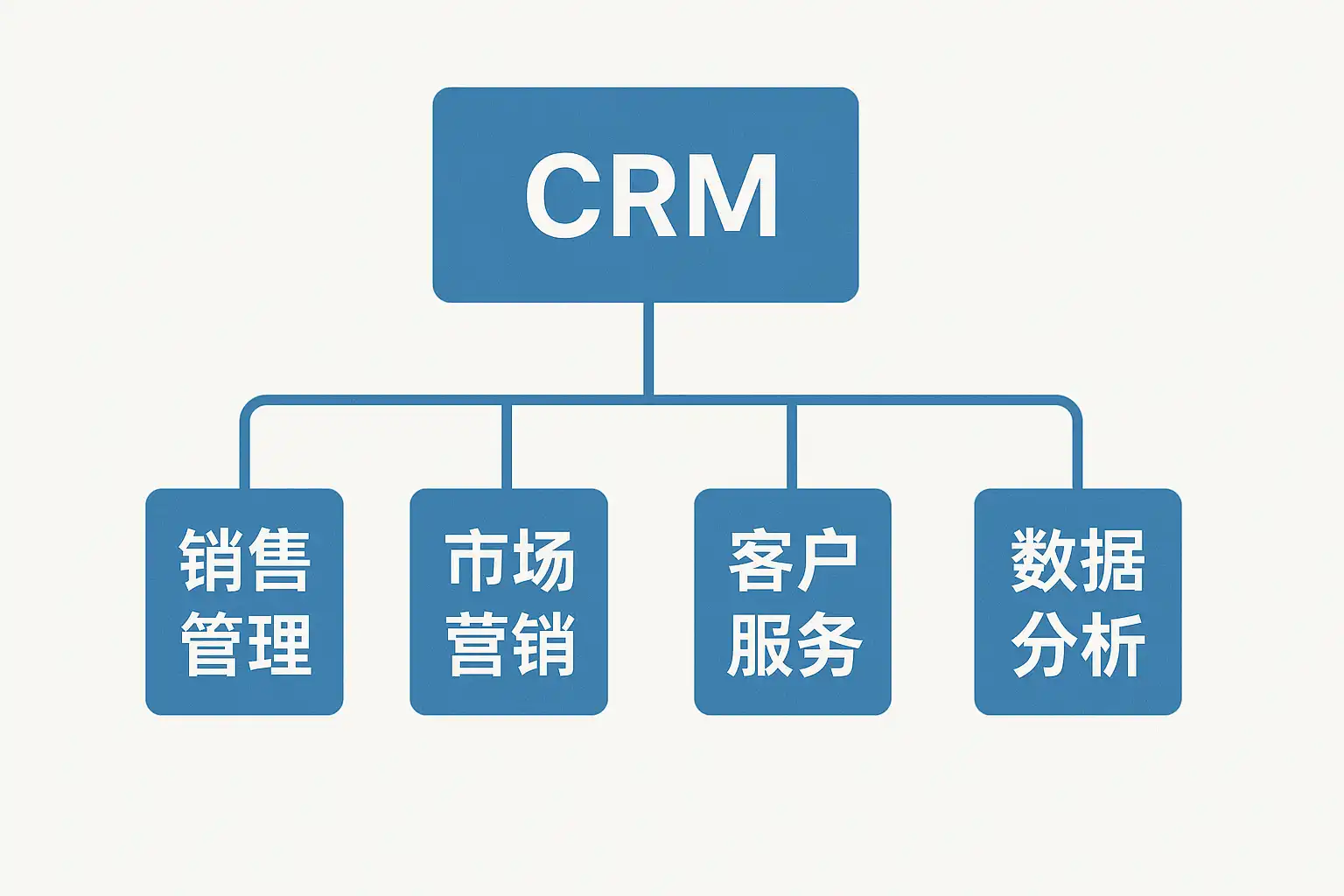CRM软件的主流功能结构一般分为以下五大模块,各模块下又细分出若干子功能。下表对常见结构做了详细梳理: