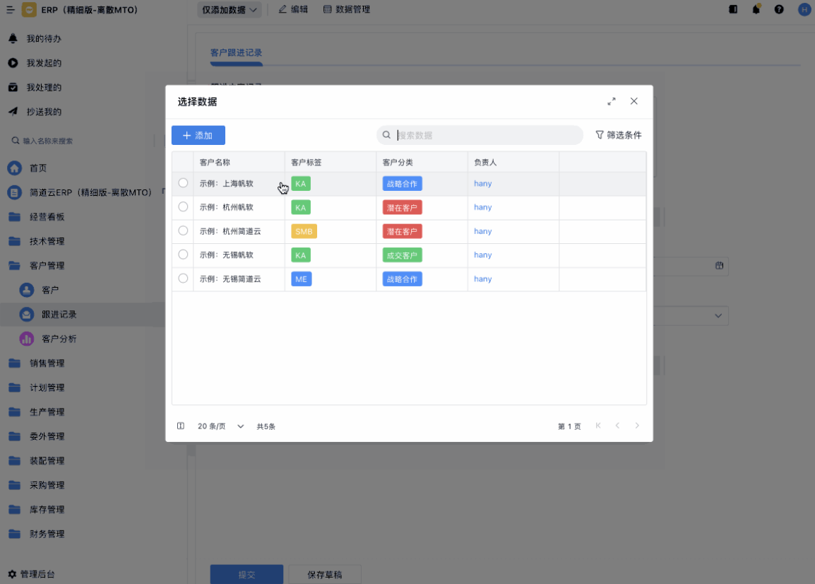 把散落在销售员微信/记事本里的客户信息全收编。自动跟踪商机、分析客户购买习惯,比如发现老客户三个月没下单,马上弹窗提醒销售去维护。