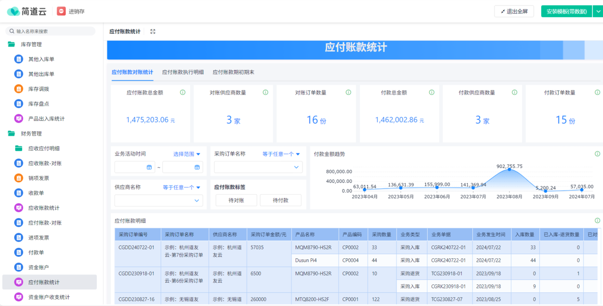 数据分析和报表模块是进销存系统的一个重要功能,通过生成各种报表(如销售报表、库存报表、采购报表等),企业能够实时掌握各个环节的运营状况,做出更合理的决策。