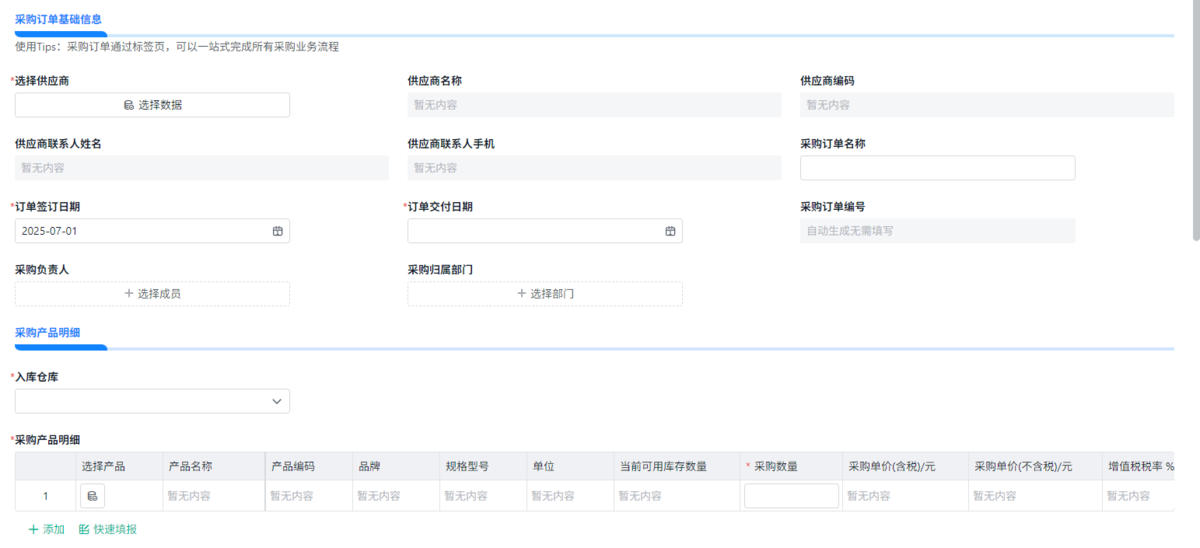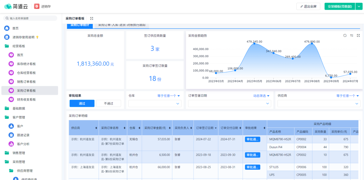 采购管理模块不仅是进销存系统的一个基础功能,也是确保物料及时供应、减少库存浪费、优化采购成本的关键。通过数字化管理,企业能够: