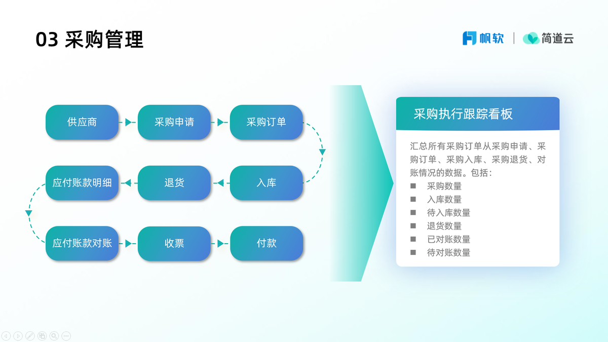 - 采购分析:对采购数据进行分析,评估采购效率,优化供应商和采购流程。