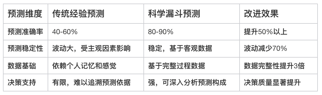 下表展示了科学漏斗预测与传统预测方法的对比: