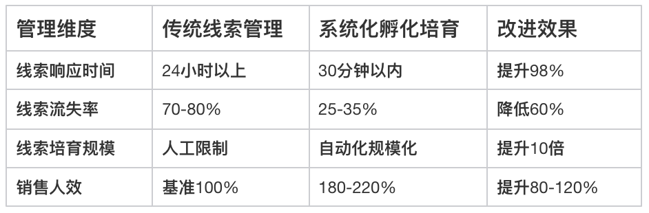- 建立数据驱动的线索孵化效果评估和优化机制