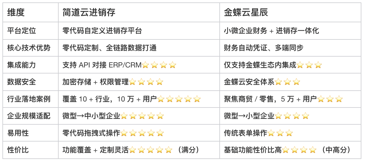 TOP2:金蝶云星辰 —— 小微企业 “财务 + 进销存” 一体化首选