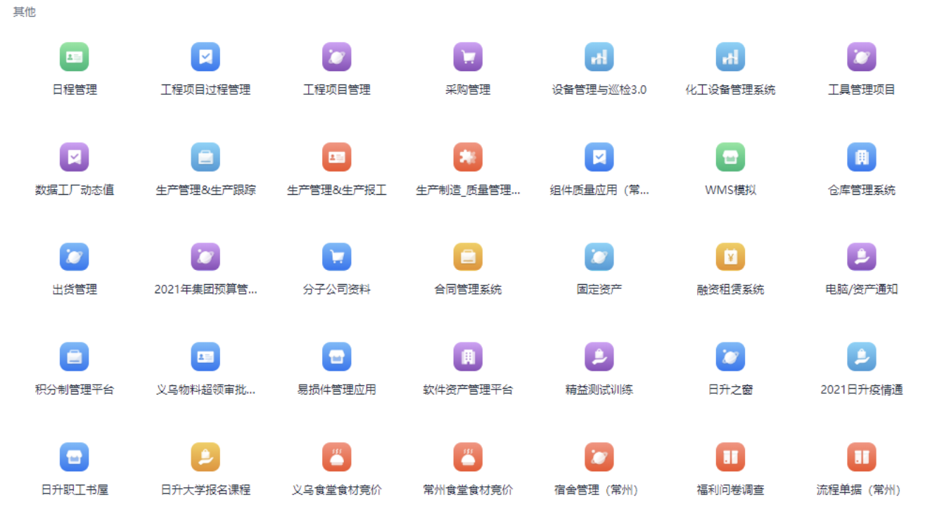 目前,东方日升在IT和业务部门“全民开发者”的共同努力下,搭建了以工程管理、设备管理、生产管理、销售管理为核心,辅以各类行政应用的应用架构体系。可以看出,集团的日常工作之中,从大到核心业务场景,到宿舍管理、食堂管理,每一环都在使用简道云应用。