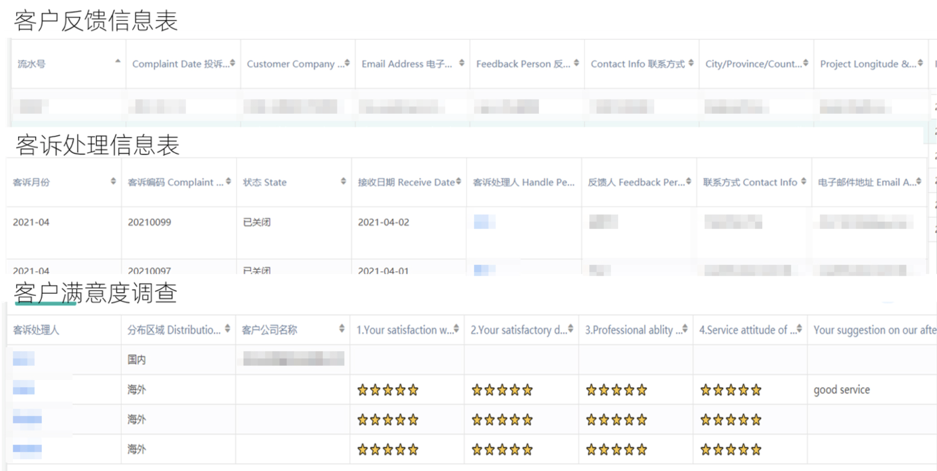 原先集团处理客诉的方法使用Word收集,用Excel记录台账。这种方式容易导致遗漏信息,且客服部向相应部门沟通不及时,相应部门处理起来也不容易把握时效性。