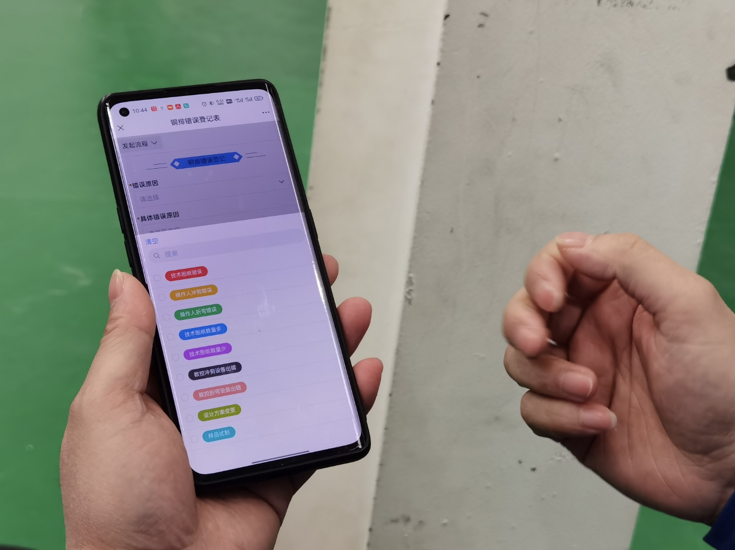 在应用搭建时,他们希望生产的每一个工艺环节都可以在线上进行记录,管理者也能直接在后台看到生产数据、项目进度等,他们摸索出用手机报工代替原先纸质工单的方式。