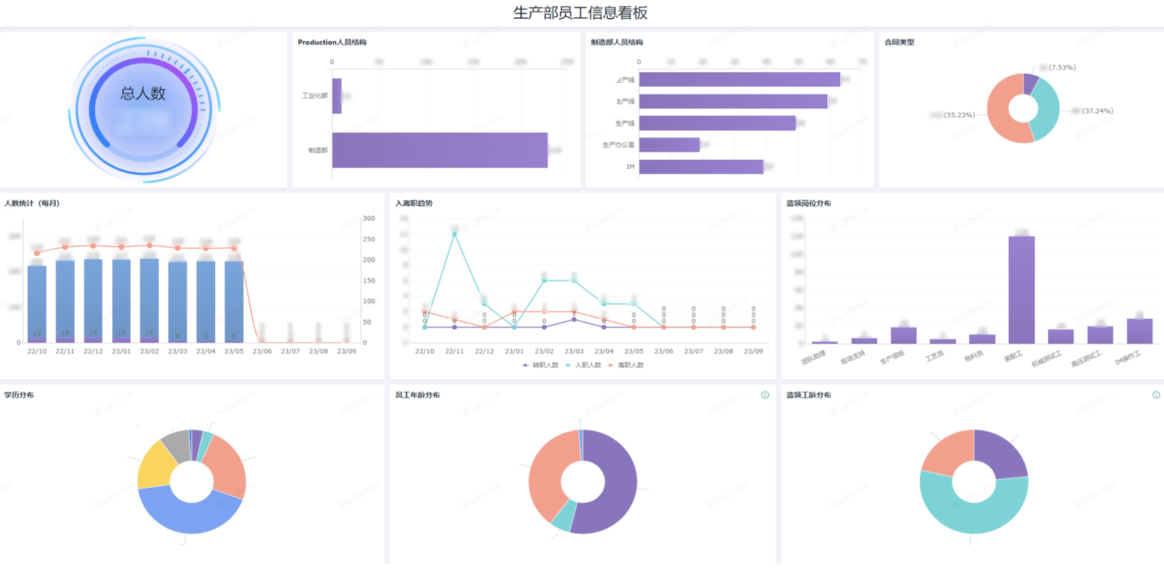 通过数据看板,生产主管可以看到不同类型员工的出勤状态,从而掌握生产线的人效等实时情况,并对人力进行合理调度。