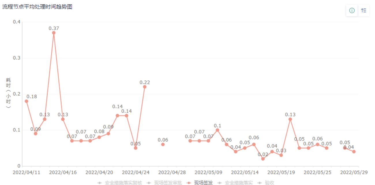 通过图4-28所示,明显可以看出自5月份开始填报节点消耗的时间明显要比4月份要少,且操作时间趋于平稳。