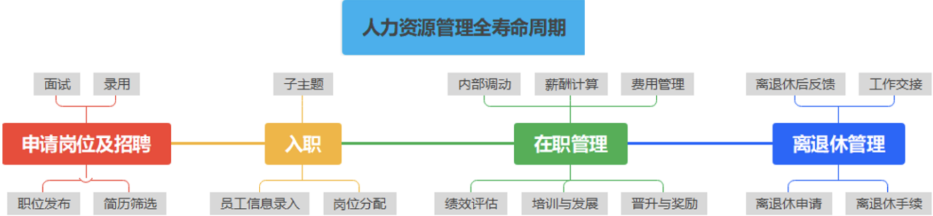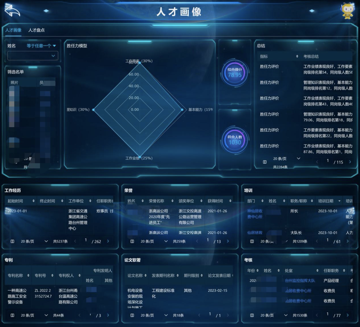 灵活串联员工个人履历、考核信息、培训经历、发展经历、荣誉等各项数据。呈现员工从招聘入职到离职(退休)的全生命周期发展路径。