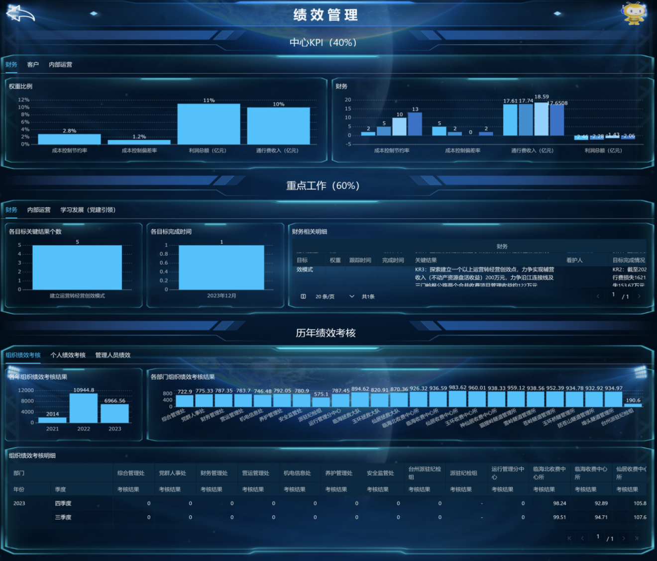浙高运公司准确把握关键业务指标和运营动态,统一规划实施了“公司/管理中心/基层站所”3级标准化数字驾驶舱的建设,以满足公司各业务板块对数字化管理的需求。公司领导及业务部门负责人能够迅速掌握全方位的业务指标信息,实时洞察各项指标的实施进度与成效,从而确保在第一时间做出精准无误的判断与决策,高效驱动公司运营管理的车轮稳步向前。