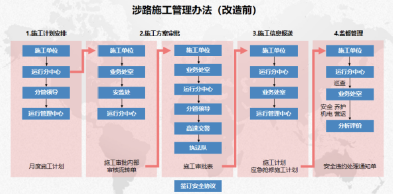 随着经济社会的快速发展和公路里程的不断增加,对于道路通勤路面及附属设施要求不断提升,伴随着高速公路涉路施工项目数量呈现大幅增加的态势,现阶段高速公路涉路施工存在以下几个痛难点: