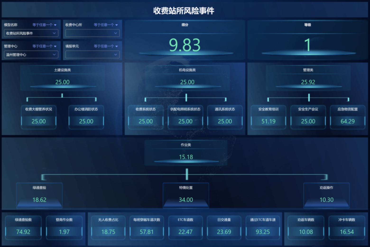 浙高运公司双重预防管控收费站所风险事件监控看板