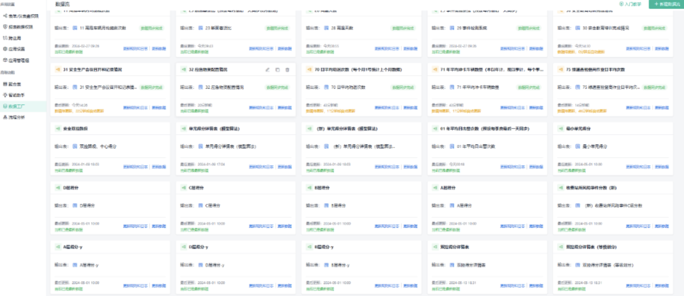 基于简道云数据工厂功能,构建双控预防管理分析体系,建立安全风险分级管控和隐患排查治理双控分析算法模型(由28个表单+75个数据工厂组成)。利用指标体系法进行风险评估,并根据评估结果将风险等级分为“蓝、黄、橙、红”四个等级,以实现分级管控。同时,我们根据机电、养护、营运和分中心四条业务管理线,针对致险因素进行定向管控,有效降低安全风险。