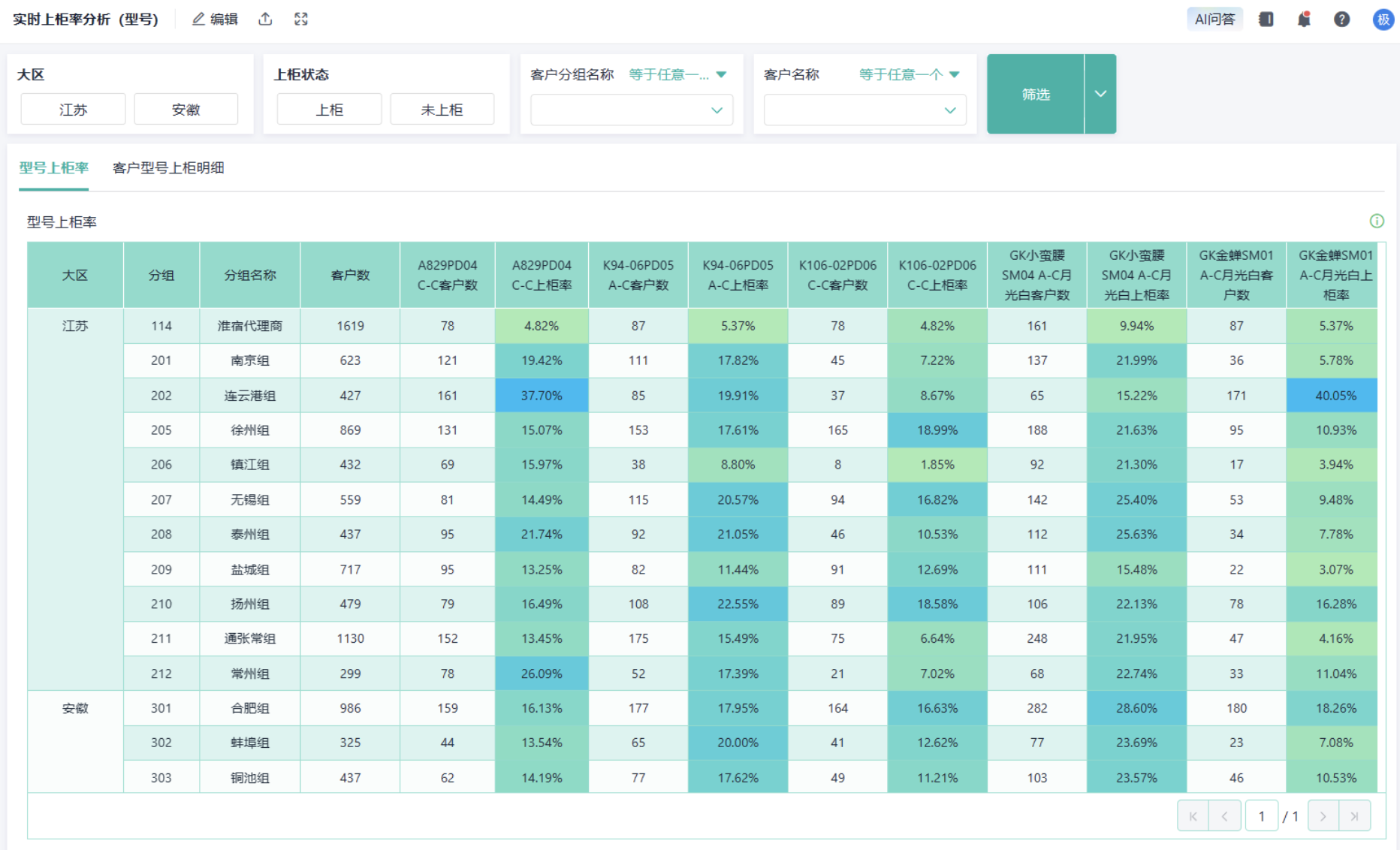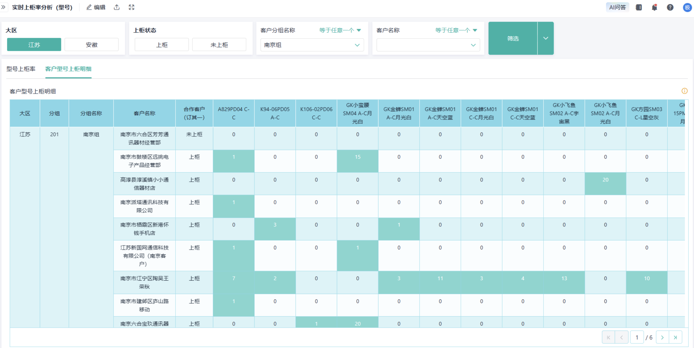 实时上柜率明细
