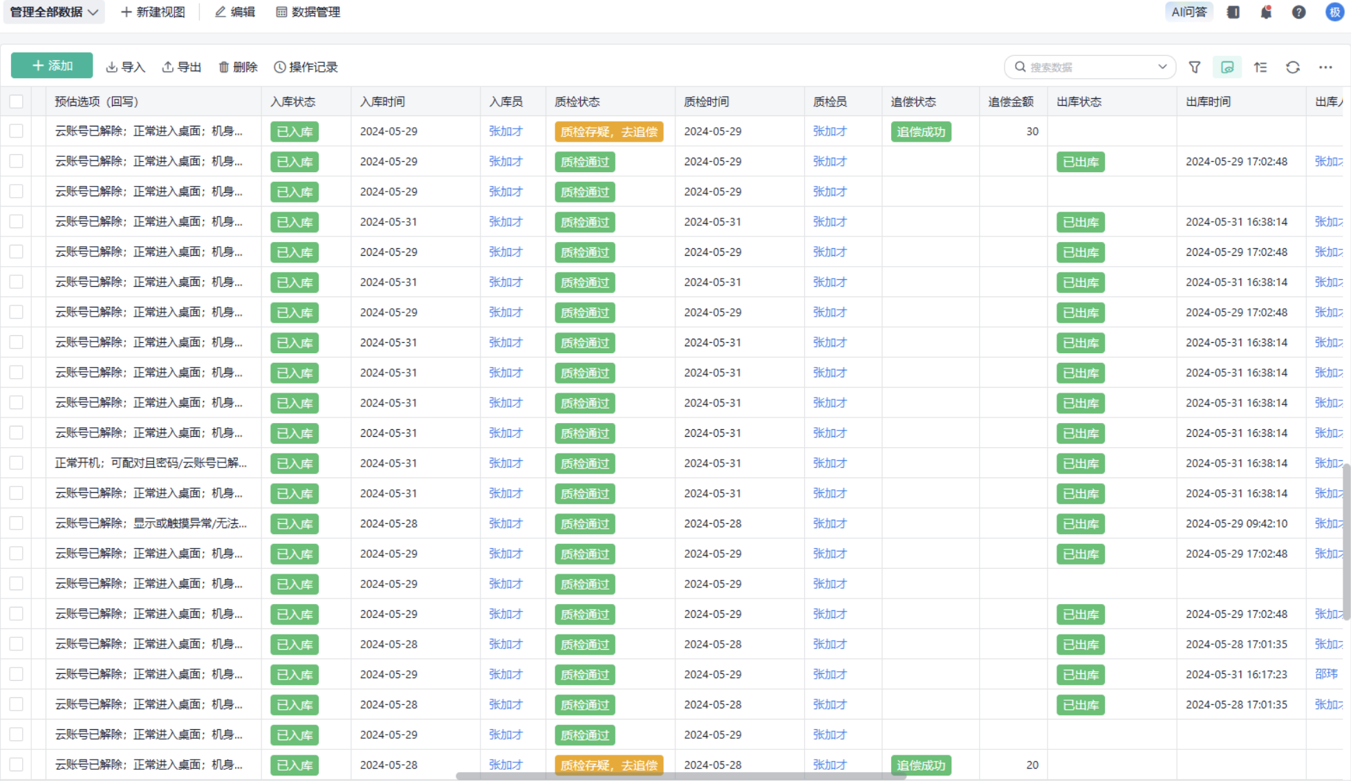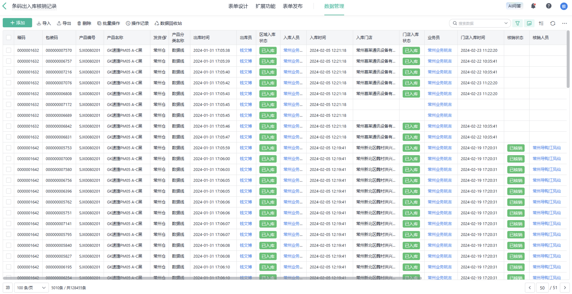 串码出入库核销记录