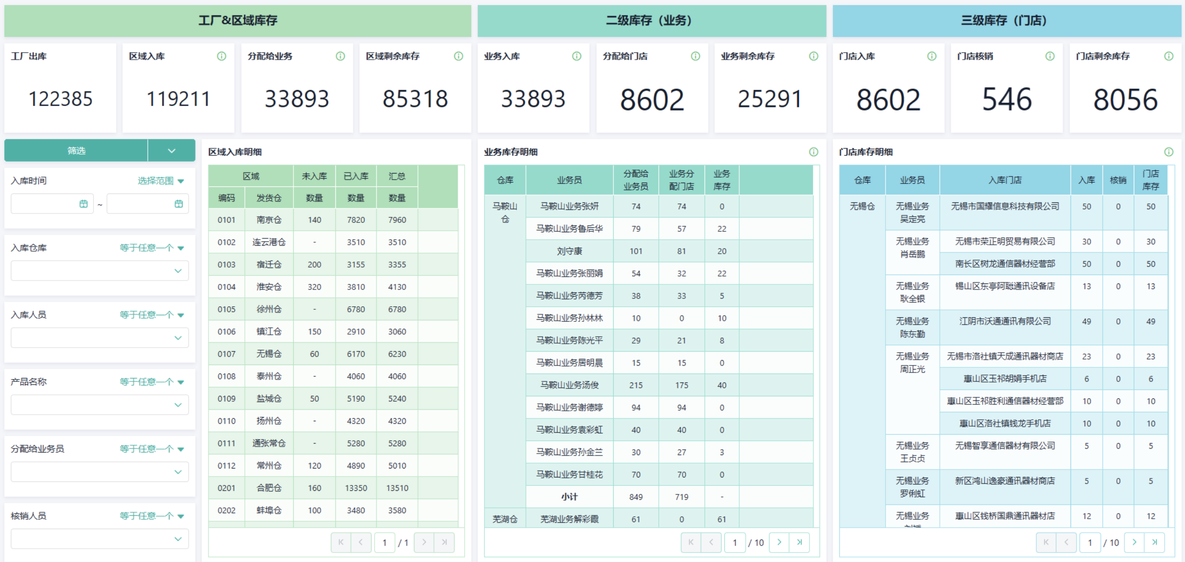 3、数据出错后很难溯源:接着痛点1说,工厂到区域,区域在分配给多个业务员,业务员再带到门店,导购员再根据门店分配的库存,在销售时进行核销。每个环节相关人只会关心自己的数据,不知道自己区域库存整体的变化情况,说不准还会存在销售了忘记上报,到货了入错数量等等问题,没有一张整体的报表,区域负责人是很难管理自己区域成百上千家门店的。