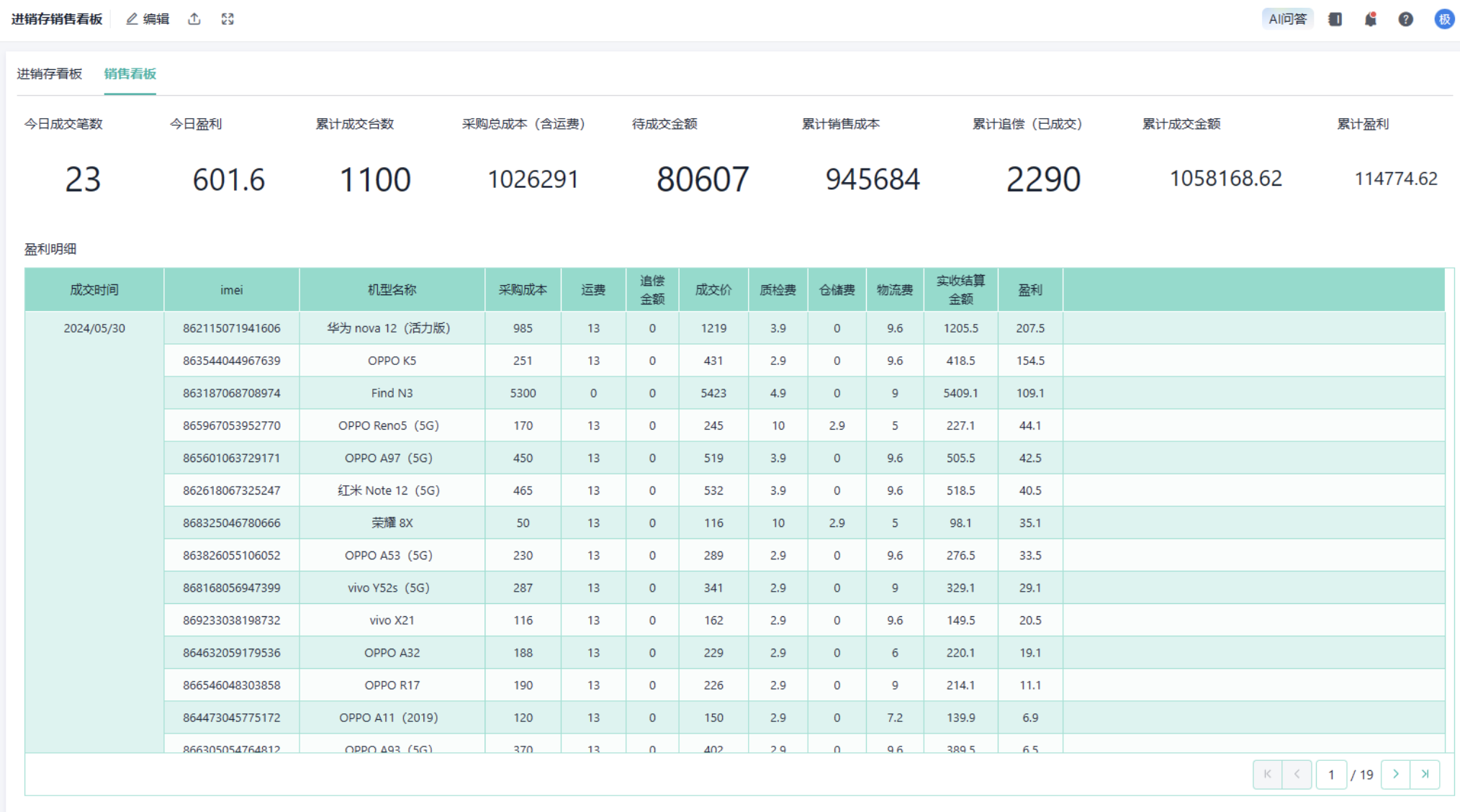二手机买卖是公司的一个分支业务,对于此类场景来说最大的痛点在于二手机出入库的管理,以及对库龄的分析。因为二手机每天都是在贬值的,采购时的低位,出货时的高位如何精准地把握是需要系统去记录并且分析的。另外,也因为二手机收回来的时候会存在与卖家描述不一致的情况,需要质检,发现问题需要追偿,追偿结果是否成功,追偿多少金额,财务是否需要重新做账等等都是考验。