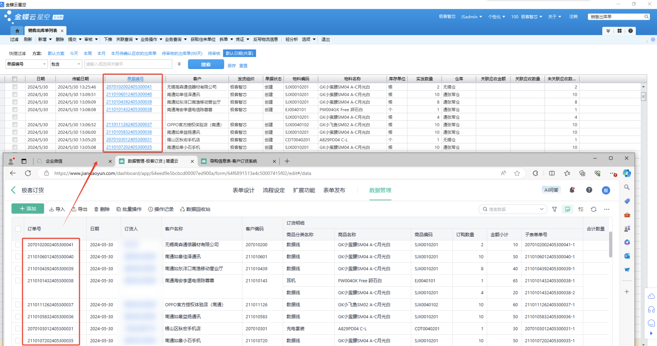 销售单简道云传输至金蝶