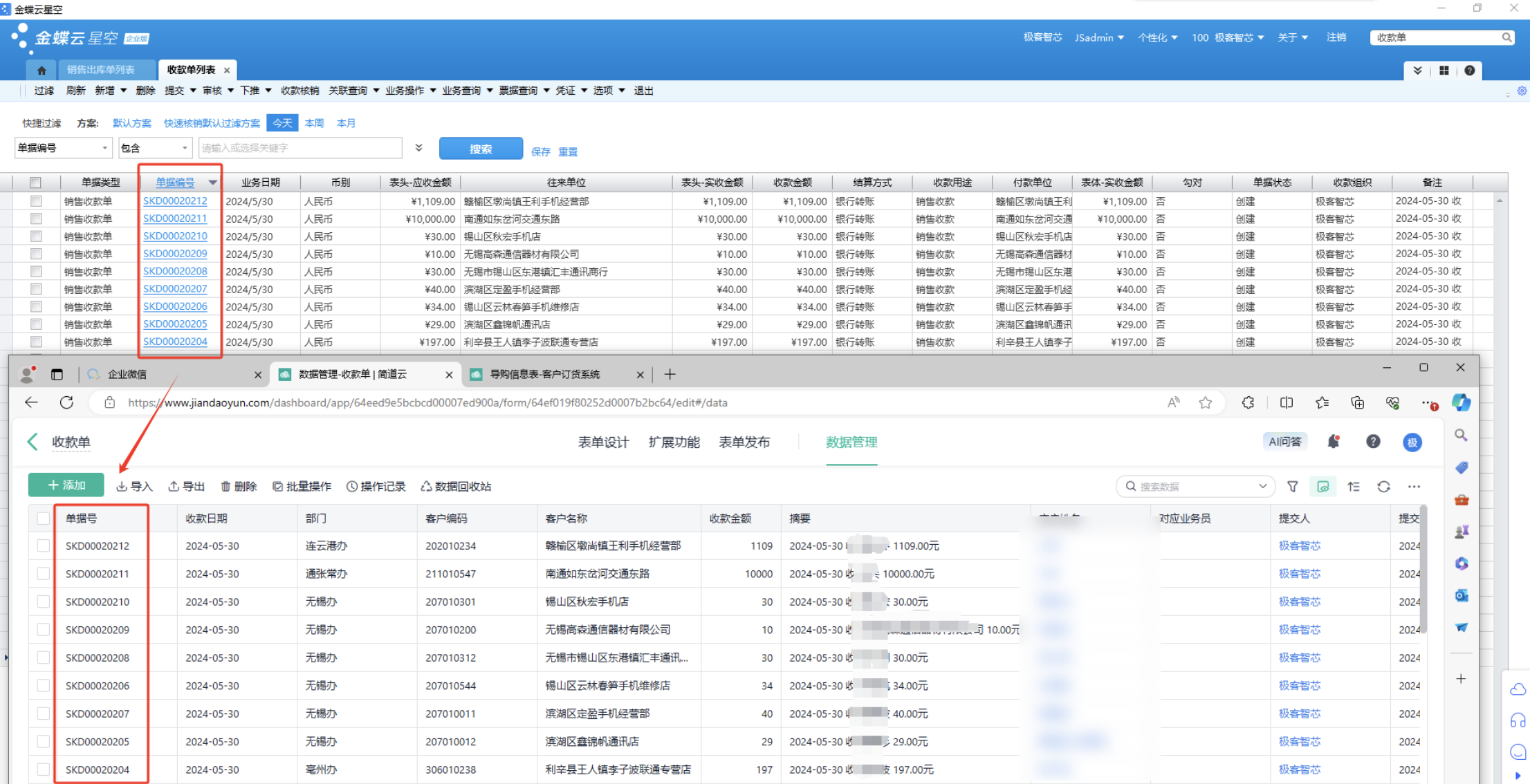收款单金蝶传输至简道云