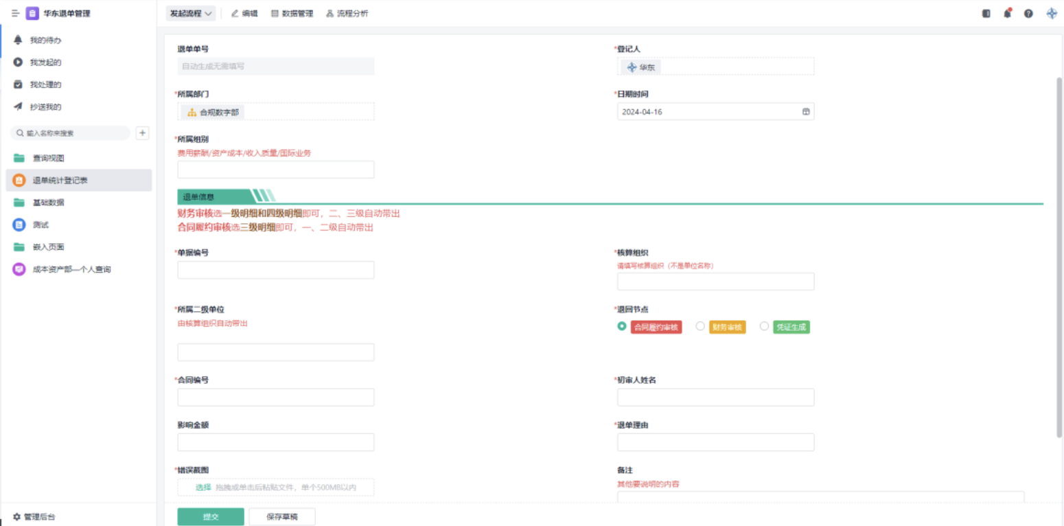 所以,如何高效记录退单信息,如何利用退单信息发现成员单位在业务办理、制度执行、核算模式上的短板,如何切实解决成员单位在业财融合、财务管理、风险合规方面的问题成为中心业务质量管理的痛点和重点。