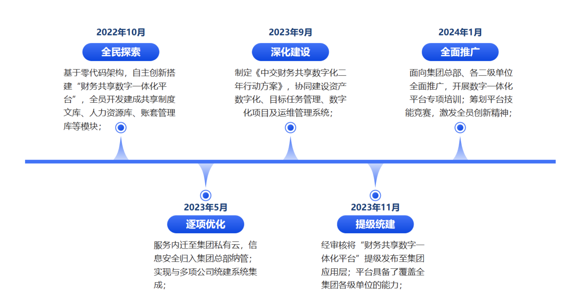 - 根据中交财务共享中心数字化行动方案,组织6大区域中心研讨共性需求。