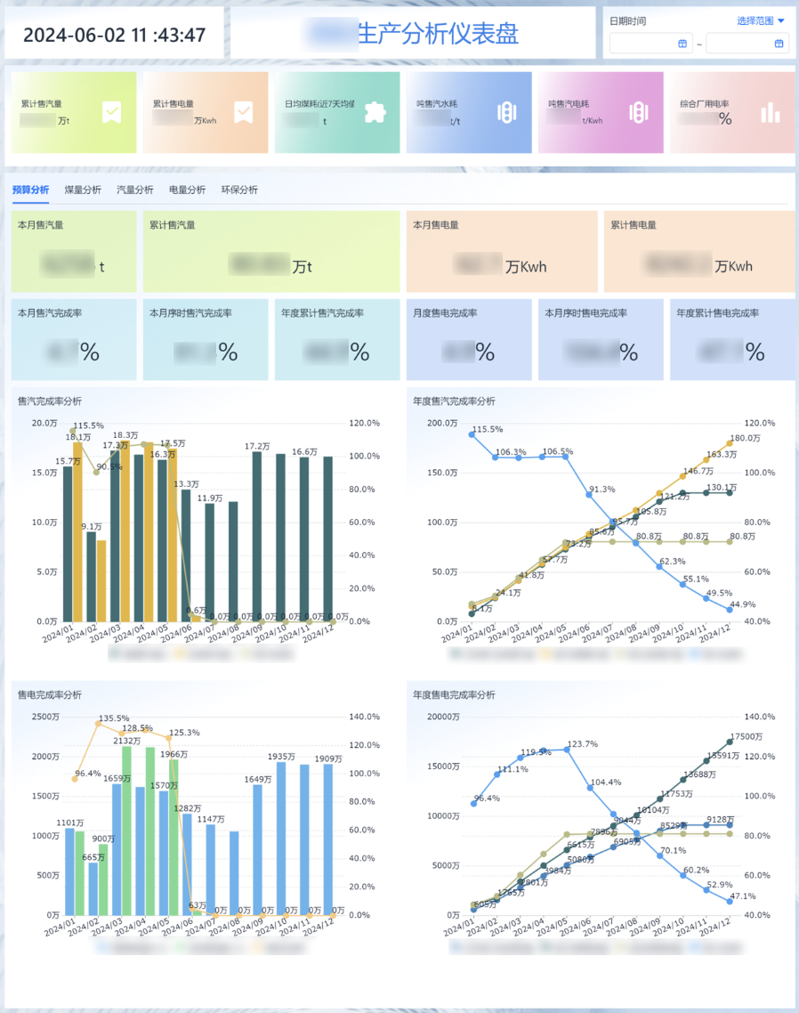 3.数据分析模型可视化:为便于集团领导、管理层、项目公司和生技各班组快速了解生产状况,利用简道云仪表盘设计合适的数据分析模型,需要将数据分析结果以图表、报告等形式进行可视化展示。提供灵活的查询和筛选功能,允许用户根据自己的需求定制展示内容和样式。