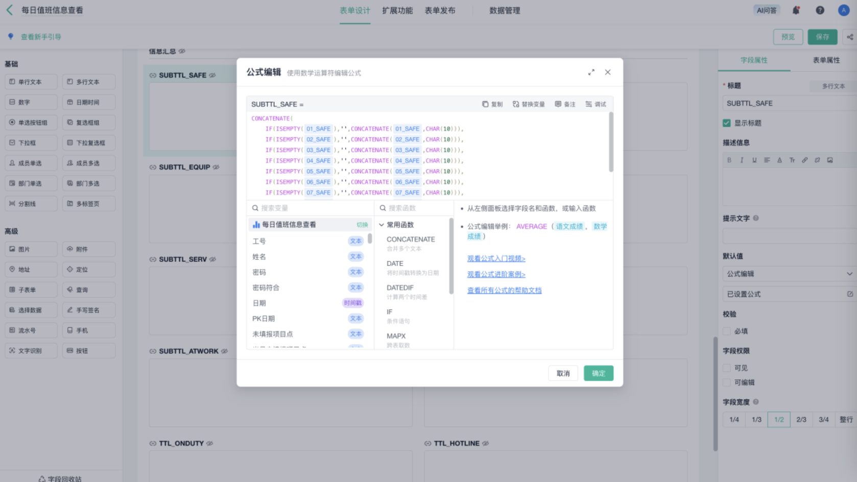 - 通过公式进行逻辑判断并拼接必要的格式字符,便于在查阅结果表单直接拉取汇总。