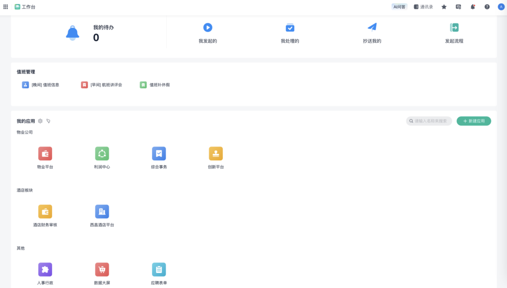 即便是灵活的零代码平台,为了保证基础数据的通用性,也需要尽量参照、使用同一套基础数据档案,因此,划分系统应用的总体原则为:主体业务在物业平台(应用)实现,具有独立专项的应用单独建立适配。