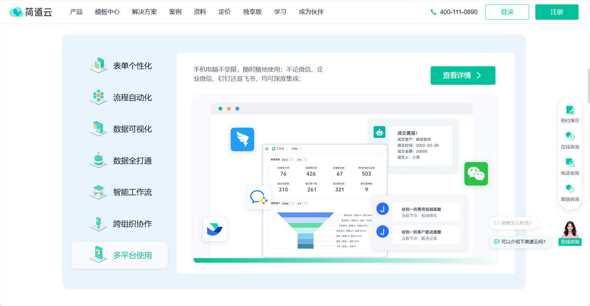 需留意:相比最简易的平台,业务人员完全掌握全部功能需要一定的学习时间;其移动端体验优化仍有提升空间。