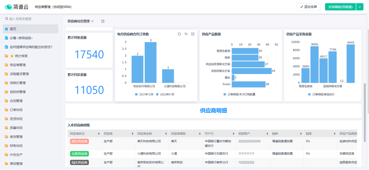 1. 简道云供应商管理系统:灵活性最强的自主搭建平台