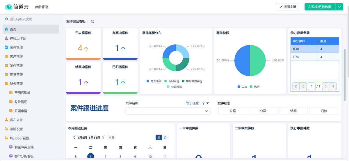 1.简道云律师管理系统——适合思路清晰、追求灵活的成长型律所