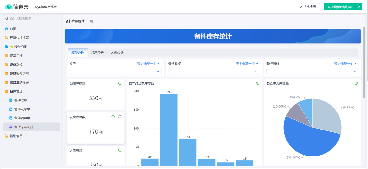 - 存量要控:常用的备件不能断货,也不宜积压太多资金。要设置安全库存,低了自动预警。