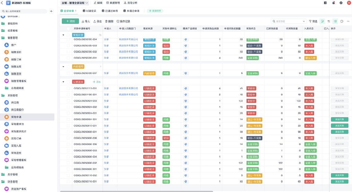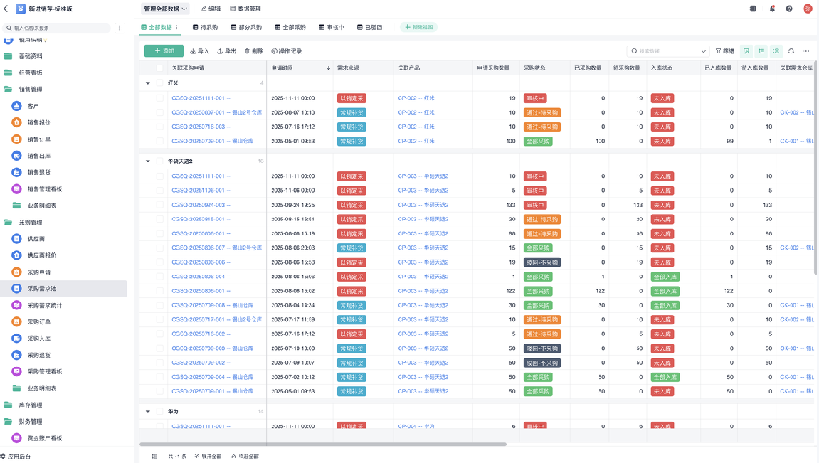 系统该有的逻辑:得能 分合自如。所有采购需求,能进一个“需求池”,让采购员像逛淘宝一样,勾选、合并、一键下单。一张销售单,允许仓库分多次出库,系统自动记着“已发多少,还剩多少”。收款能按合同设好分期计划,时间到了自动提醒。系统得能跟上你业务的灵活劲儿,而不是让业务去将就系统的死板。