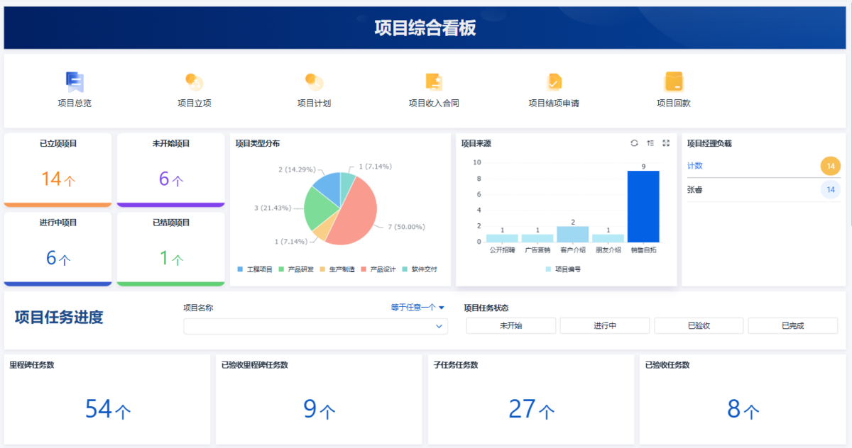 以我现在用的简道云项目管理系统为例: