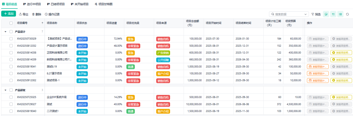 为了讲得更清楚,我还搭了一套极简项目管理系统,包括立项、执行和结项全流程和一张总进度看板,