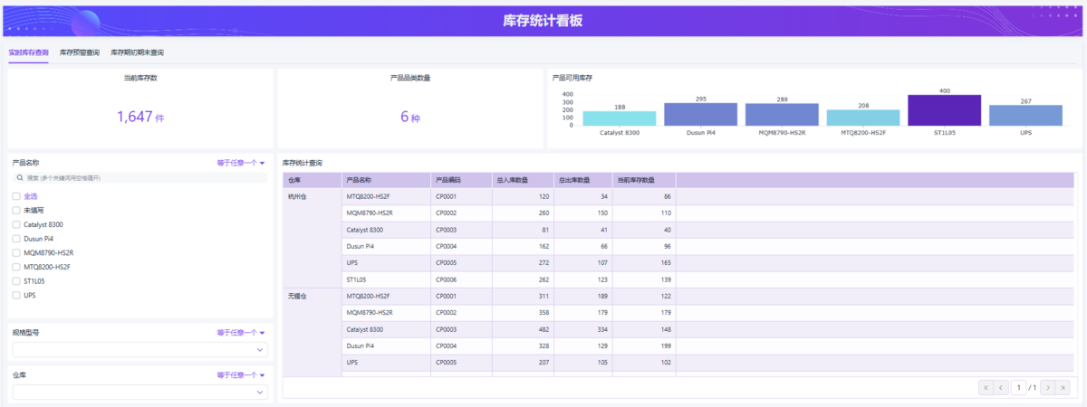 - 仓库在看库存表