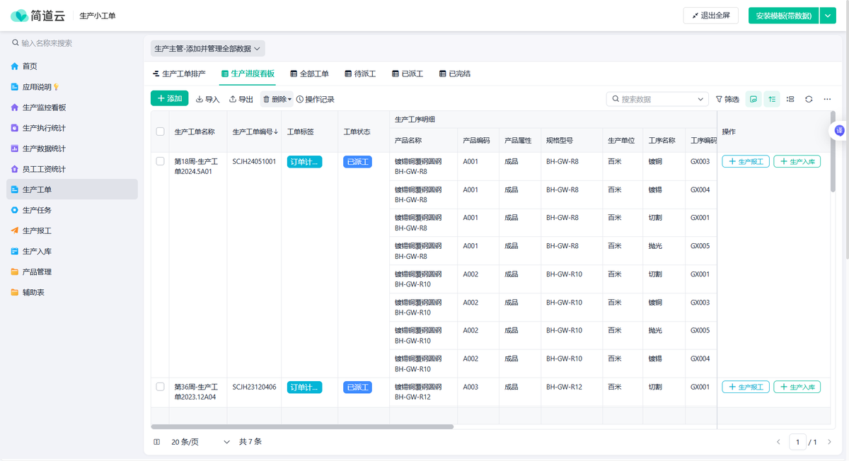 这张单子会跟着生产流程走。从计划排产到车间执行,再到完工入库,每个环节都在单子上留下记录。这样你随时都能知道任务进展到什么程度。