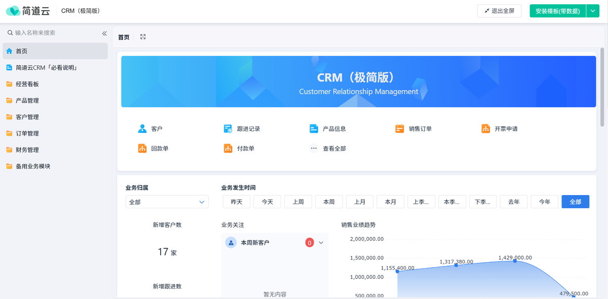 换句话说,小企业 CRM 核心就是一条线:客户 → 产品 → 订单 → 财务 → 看板,把这条线打通了,你的销售、管理和决策效率都会提升。