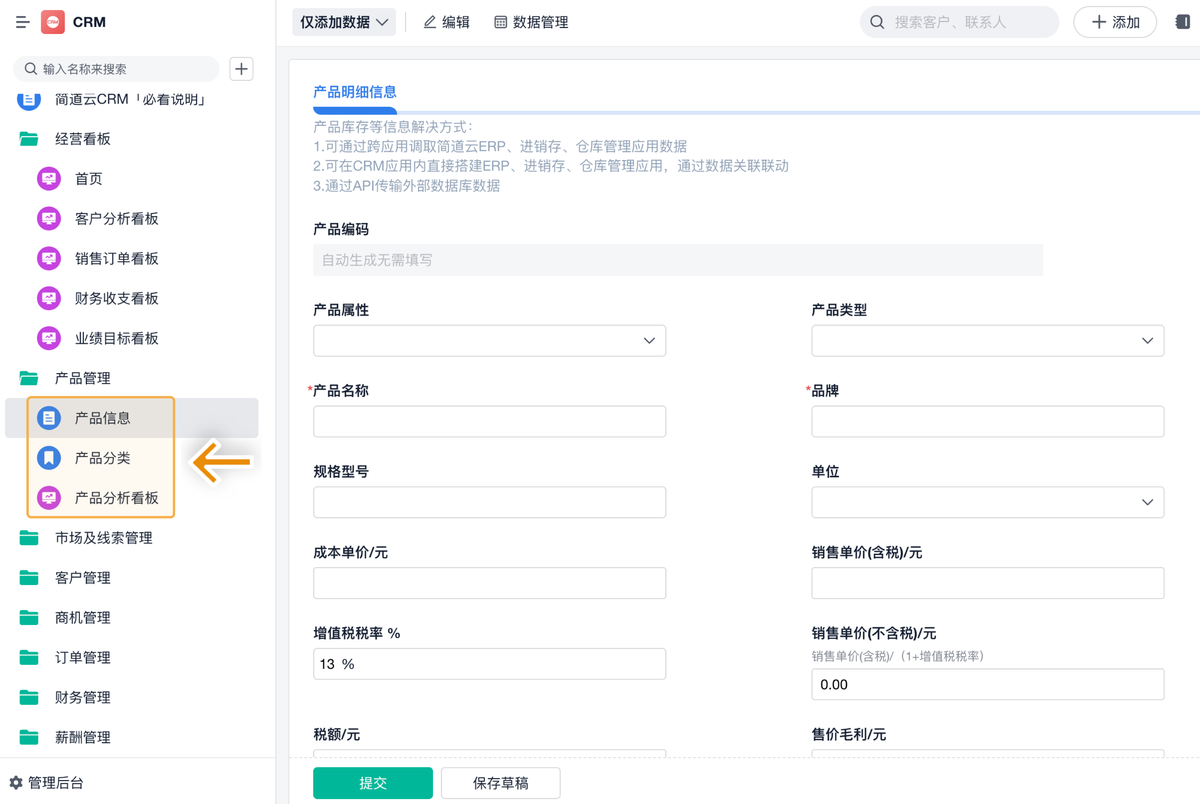 - 清楚自己卖什么、价格多少、库存多少,是小企业 CRM 必备功能。