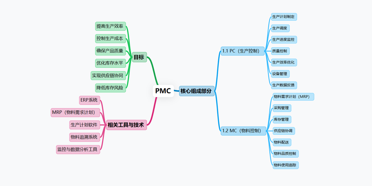 PMC 是 Production Material Control 的缩写,中文意为 生产与物料控制。它是一个整合性的管理职能体系,主要包含两大核心部分: