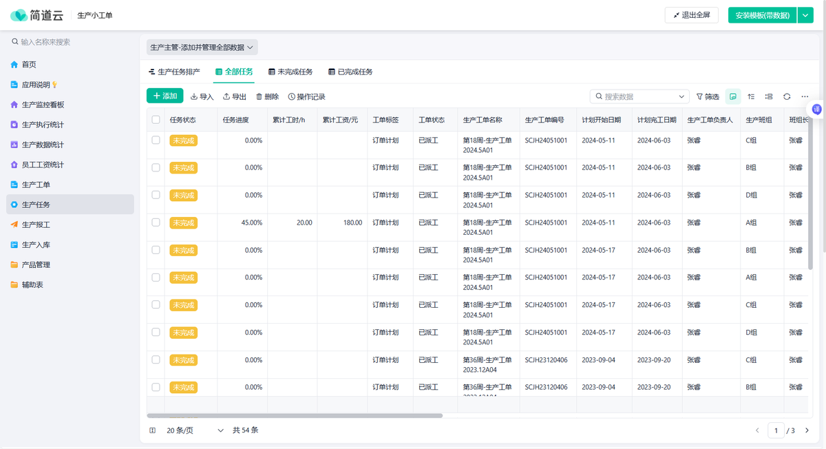 - 可视化计划排程:在简道云中,可自定义搭建主生产计划与车间作业计划应用。通过甘特图等视图,计划员能够直观地进行任务排程,并快速响应订单变更或紧急插单需求。
