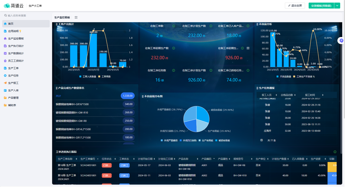- 均衡化排程与可视化监控:在简道云中建立均衡化排程模型,将月度订单自动分解为日/班次的均衡生产序列。通过可视化仪表盘,管理者可以实时监控各产线的生产节拍、计划达成率及在制品库存水位,确保整个系统平稳流动。