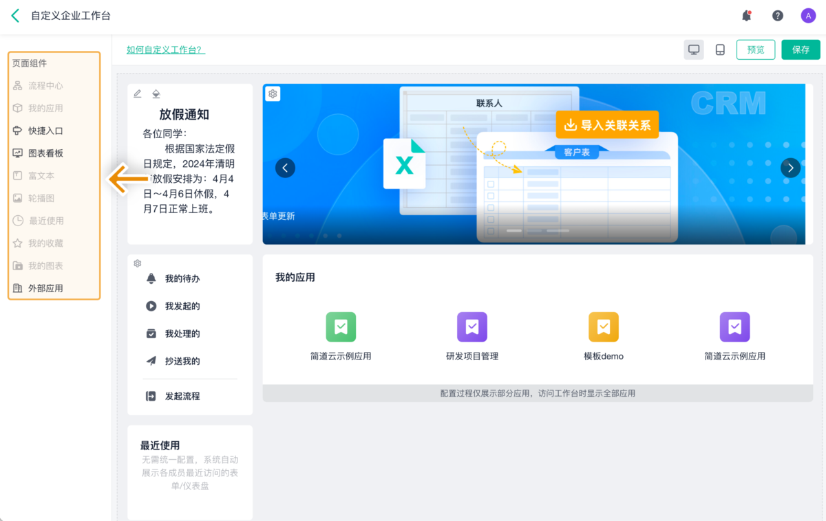 简道云OA可以直接集成到企业微信、钉钉、飞书这些大家每天都在用的办公软件里,不用下载任何新APP。
