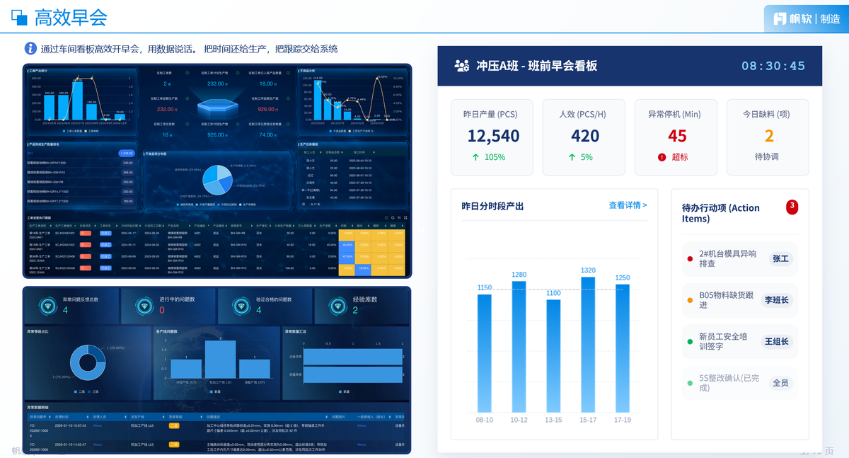 这些数据要公开,让大家看到进步,也看到差距。可以做成管理看板,放在车间显眼位置,今天效率多少、停机多少,一目了然。